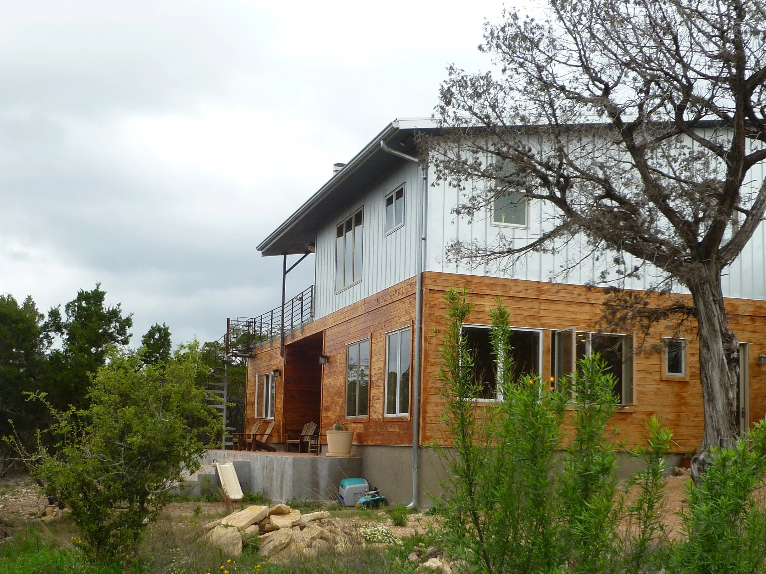 This two phase project involved design and build for an initial guesthouse with a large attached workshop and then a 3/2.5 forever home. Both projects focused on sustainability, outdoor living space, and the site’s panoramic view of the Texas Hill Country.